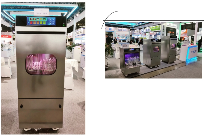 本次展出的觸屏洗瓶機,質感與美感兼具的設計,讓人第一眼看上去就能感受到優雅的藝術美。智能觸摸屏一體化設計,觸感真實,準確性高,操作更加流暢,交互感更強。其它新增功能,讓用戶體驗感更好。參會者通過現場試機體驗,對產品的性能和創新性給予了高度的認可。