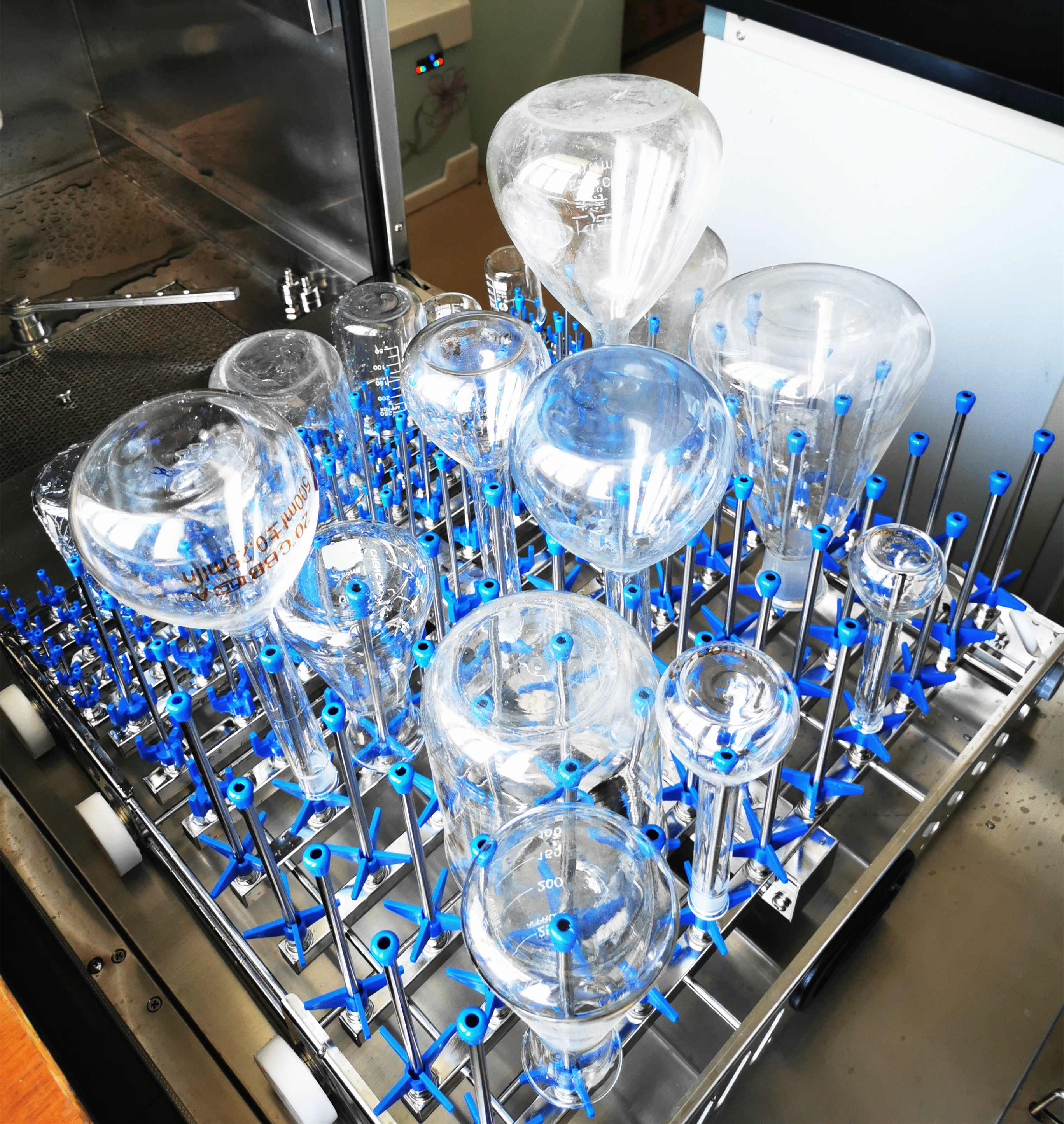 安裝完畢后,技術(shù)人員讓我開機(jī)試洗。我將待洗的瓶皿放入籃架,關(guān)上倉門,穩(wěn)穩(wěn)按下通電按鈕。剎那間,噴淋系統(tǒng)仿若被激活的猛獸,瞬間啟動。強(qiáng)勁有力且均勻細(xì)密的水流,恰似噴泉般洶涌噴薄而出,在洗瓶機(jī)內(nèi)部縱橫交錯,迅速交織成一張密不透風(fēng)的水網(wǎng)。這張水網(wǎng)所到之處,洗瓶機(jī)內(nèi)部的每一處縫隙、每一個角落,污垢雜質(zhì)皆無處遁形,被沖刷得干干凈凈,看到這一幕,我不禁露出滿意笑容。我清楚,這臺洗瓶機(jī)將改變繁瑣的清洗模式,大幅提升科研效率。