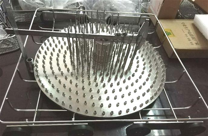 洗瓶機定制專用籃架ID016系列主要用于清洗50-1500ml的進樣瓶、頂空瓶、離心管、小試管、小試劑瓶等細小瓶。噴針細以≤3mm為主,分布在大圓盤的分流盤面上,可根據不同高度的瓶子設計相應長度的噴針。